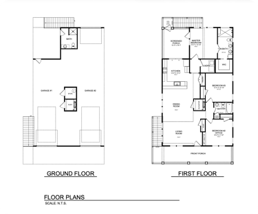 The home features a comfortable primary retreat, with the master bedroom measuring 12'-2" x 12'-10". This private suite includes a large walk-in closet and an en-suite master bath. The thoughtful layout also offers a versatile second bedroom, perfect as a home office, alongside a spacious third bedroom. A centrally located full bathroom and a dedicated laundry room add convenience without wasting space.